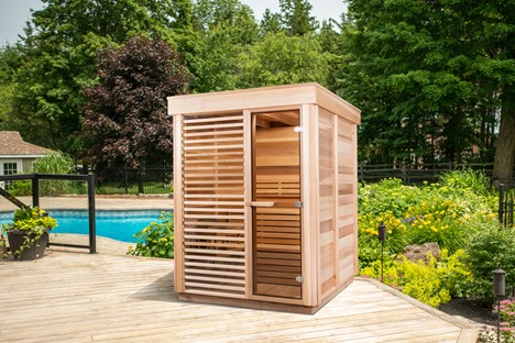 The Pure Cube CU550 Outdoor Sauna brings a luxurious new class of modular pre-built sauna kits to your home or cottage. Embrace the outdoors with the large double pane tempered glass front window and full glass door.