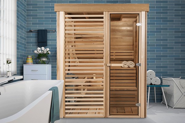 The Pure Cube PU550 Indoor Sauna comes in easy to assemble wall and roof panels and prebuilt solid cedar benches and duckboard floor. This model comes with an electric heater and comfortably sits up to 2 adults.